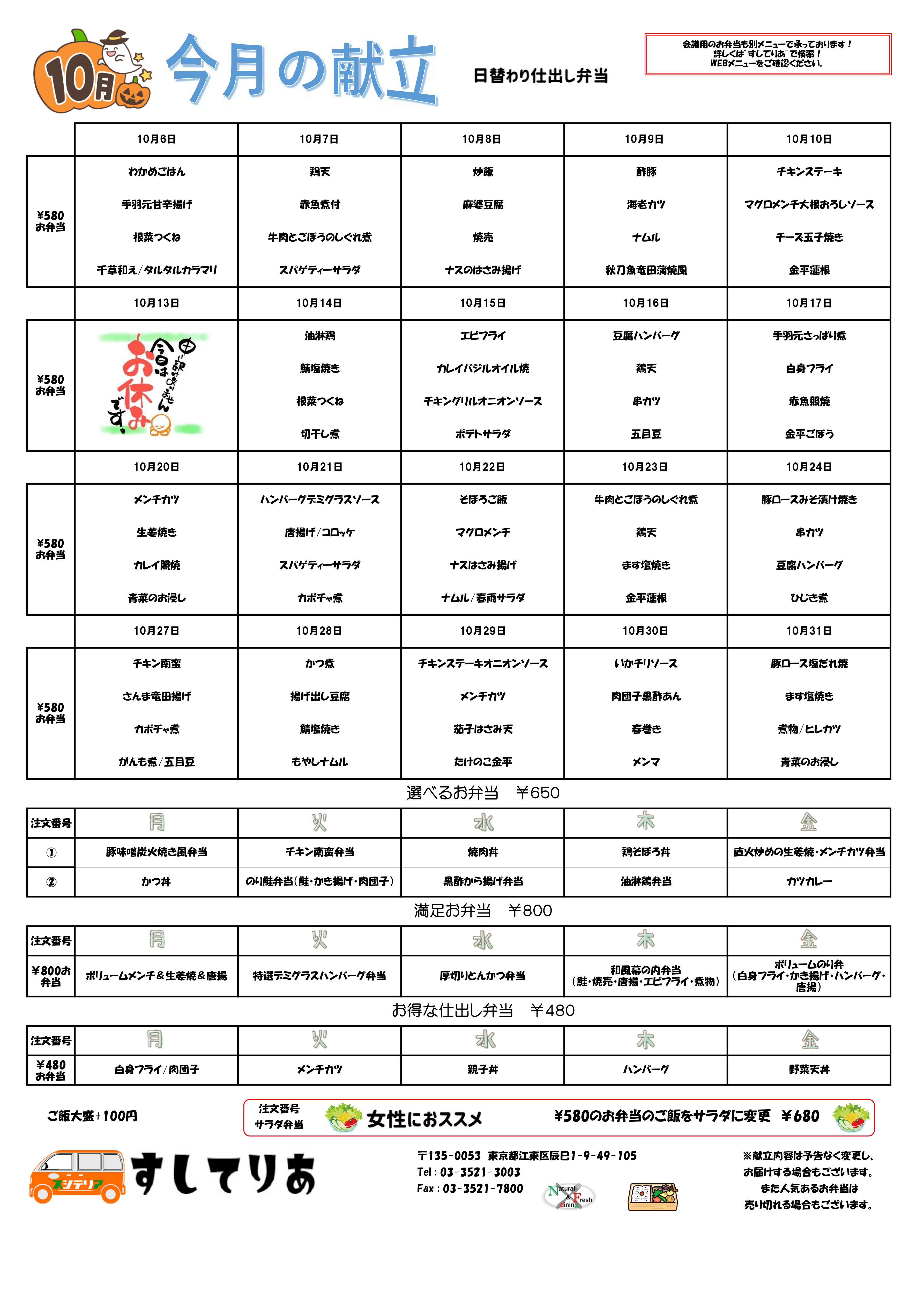2025年10月仕出し弁当メニュー表