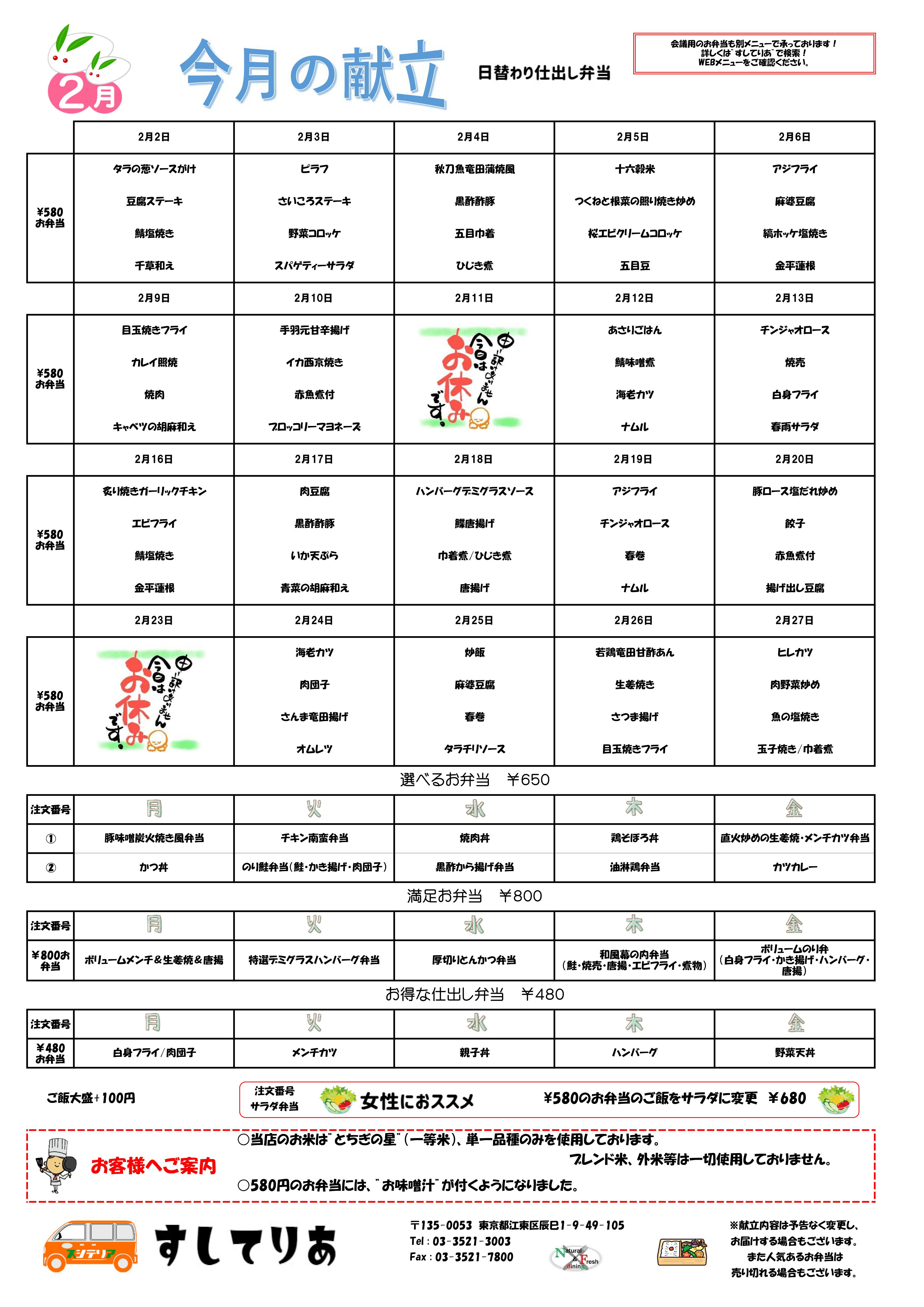 2026年2月仕出し弁当メニュー表